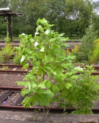 Erst seit dem frühen 20. Jh. kultiviert in Frankfurt bekannt (Möbius 1903). Danach fehlen Nachweise bis zu einem Fund auf dem Güterbahnhof (Bönsel et al. 2000). Verwildert aktuell häufiger als C. bignonioides und ist zerstreut im Siedlungsbereich zu finden. Besonders am Bahnhof Mainkur, wo Bäume unterschiedlichen Alters im Gleisschotter wachsen.